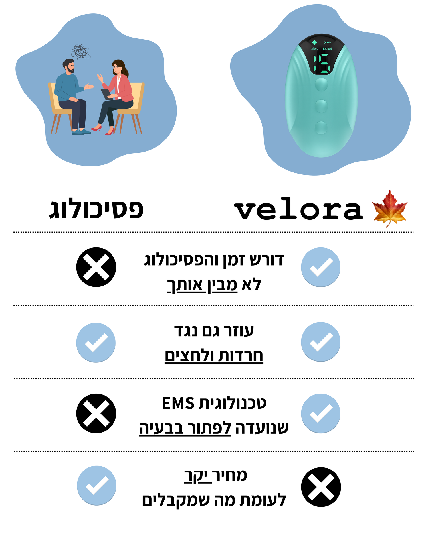 בסקר שערכנו בין לקוחות שקנו מאיתנו, רבים שיתפו אותנו בהרגשתם לגבי השימוש במכשיר שלנו - והנתונים שקיבלנו רק העצימו את מה שידענו מההתחלה - שמביאים פיתרון אמיתי, הלחצים והחרדות מפסיקות.