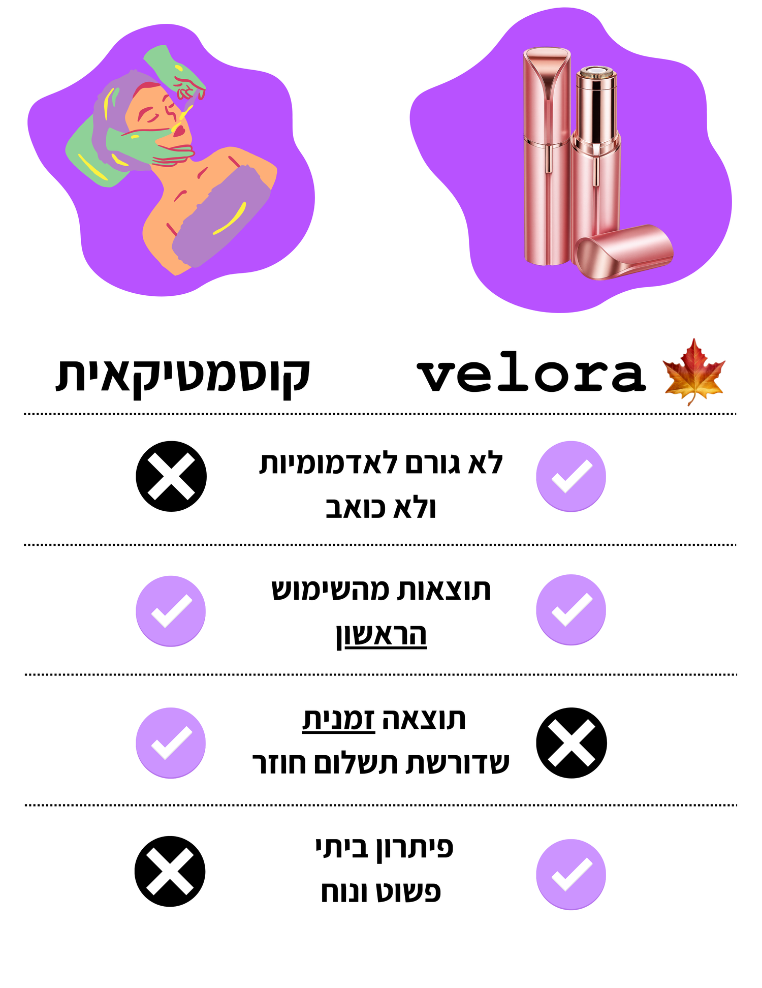 דיווחו שלאחר שימוש במכשיר VeloraFace הפסיקו להרגיש כאב והיה להן כיף להסיר את השיער שלהן.